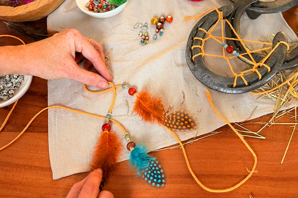 Denke auch daran, Perlen für die drei hängenden Federn zurückzulegen.
