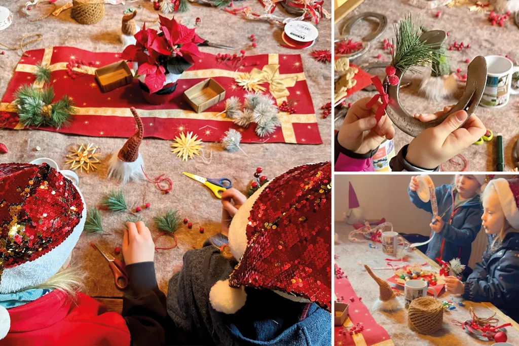 In unserer Wichtelwerkstatt am Fjordgestüt wird es gemütlich und kreativ: Bei heißer Schokolade, Plätzchen und Orangenduft basteln unsere Ponyclub-Wichtel festlich dekorierte Hufeisen mit Zweigen, Strohsternen und Samtschleifenband. In der warmen Stallküche entsteht so echter Weihnachtszauber, bevor es hinaus zu unseren Fjordpferden auf die verschneite Koppel geht.