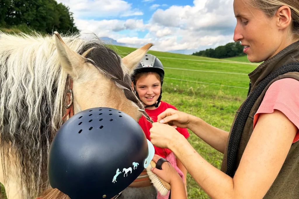 Besonders schön war das Wiedersehen für einige Kinder, die sich bereits aus vergangenen Ferienwochen oder dem samstäglichen Reitunterricht im Ponyclub kannten. Die Freude war riesig, gemeinsam neue Abenteuer zu erleben, sich gegenseitig beim Reiten zu unterstützen und abends gemeinsam zu lachen.